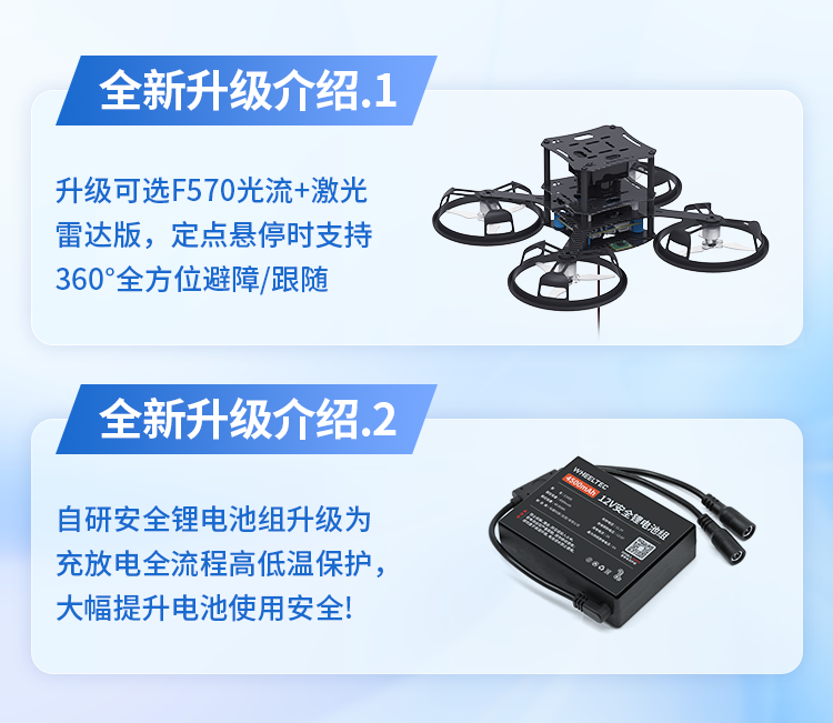 轮趣F570开源无刷飞行器加推光流+激光雷达版:定点悬停时支持360°全方位避障/跟随,电池新增高低温充放电保护,安全性全面提升