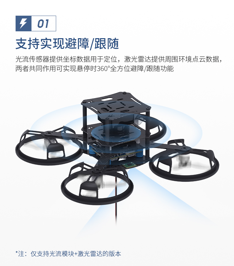 > 轮趣F570开源无刷飞行器加推光流+激光雷达版:定点悬停时支持360°全方位避障/跟随,电池新增高低温充放电保护,安全性全面提升