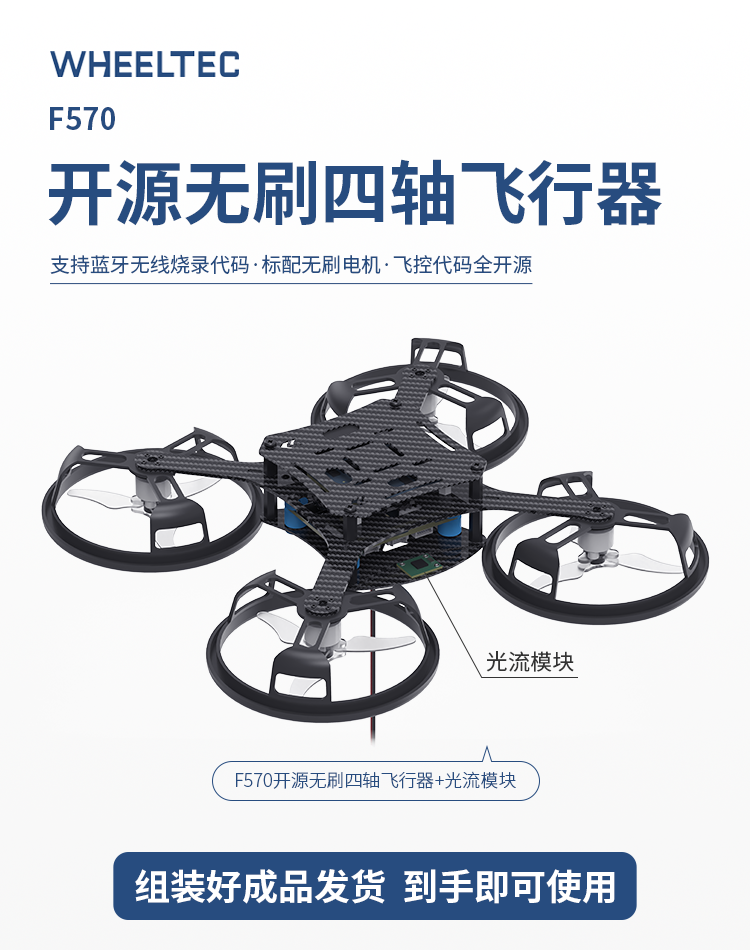 【新品上市】轮趣推出F570开源无刷四轴飞行器带光流传感器版,支持定点悬停,飞控代码全开源!