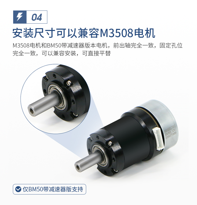 双11到手价低至143元起!轮趣推出BM50驱控一体无刷电机带减速器版,尺寸兼容M3508电机,内置AB相编码器