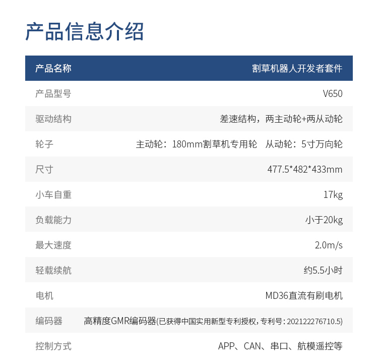 V650割草机器人开发者套件